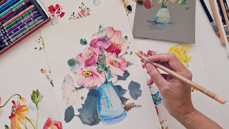 While the main focus is watercolor florals, the techniques you’ll learn—like brush control, color mixing, and composition—apply to any subject. You’ll also find occasional landscape and creative exercises to stretch your skills.